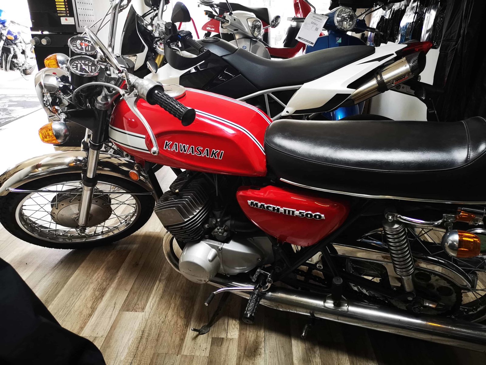 La mythique Kawasaki 500 H1 MACH III est chez Chambourcy Motos !