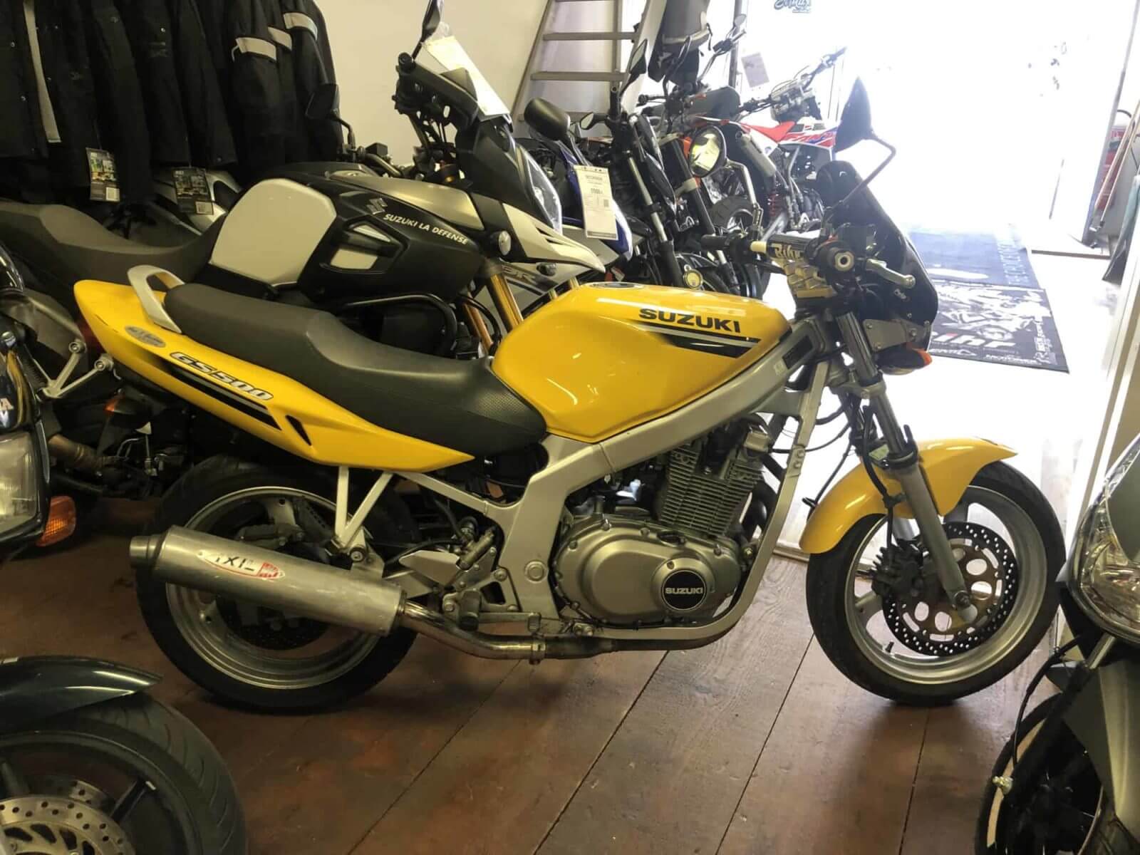 Vendu ! Suzuki GS 500 E – 2300€MarqueSUZUKIModèleGS 500 EPrix2 300 €Année du modèle2001CatégorieRoadsterCylindrée500 CM ³Motorisation4TCouleurJAUNEGarantie3 moisKilomètres20704 KmDescriptifSAUTE VENT MOTO EN BON ETAT GARANTIE TROIS MOIS